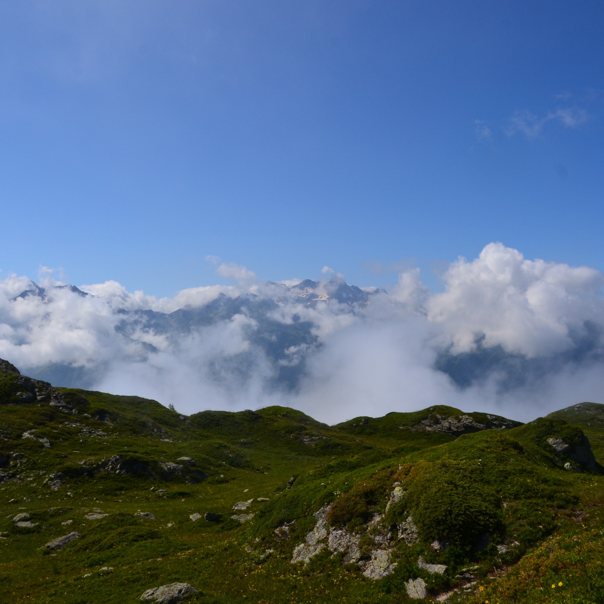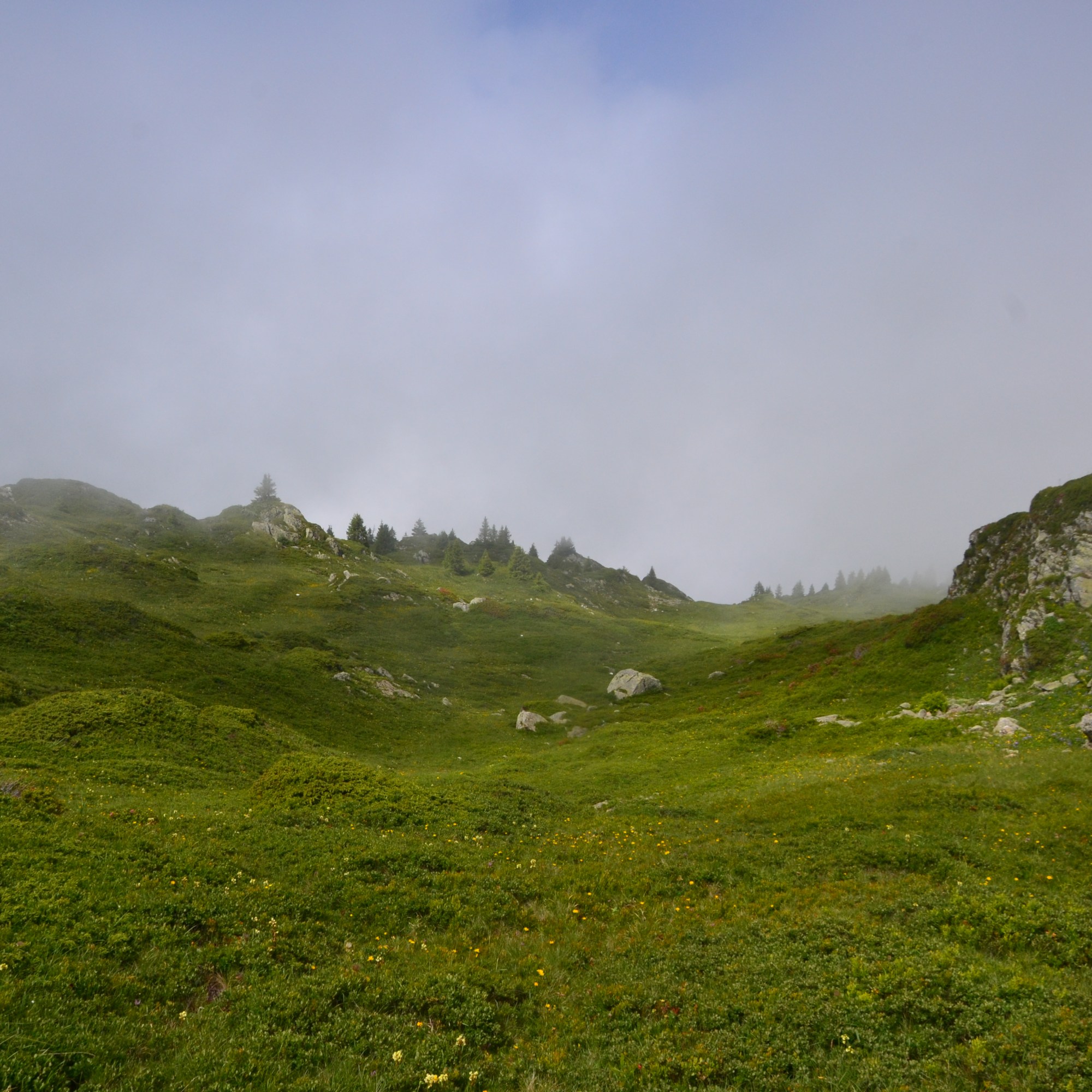 Encore une fois des paysages magnifique, je continue donc mon chemin pour descendre via le plateau des chamossières, toujours sous la brume, bien sur, encore un prés et encore plein de patou que m’engueule, puis me voila arriver sur le col de cochemin, puis je continue a descendre jusqu’à notre dame, d’ailleurs, au environs des chambeaux vous rencontrerez beaucoup de marmotte, j’en ait d’ailleurs vue 2, Puis je suit revenue sur jarrier, avec un peut de mal car les sentier sont vraiment peu précis avec google map j’ai fait au moin 1k voir 2km de surplus, surtout que je n’avait pas encore acheter la carte ign, mais bref ce fut une aventure très sympathique, en plus c’était plutôt vide j’ai croisée que 4 personnes et 1 bergers sur les sentiers.